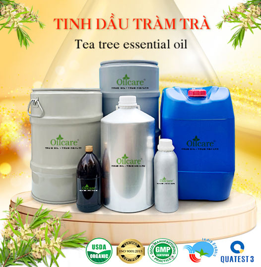 Chúng tôi chuyên cung cấp tinh dầu tràm trà nguyên chất, chiết xuất từ lá và cành non tràm trà Tea tree , nhận đơn hàng từ 1 lít đến phuy số lượng lớn. Cung cấp đầy đủ COA, MSDS, hóa đơn GTGT và kiểm nghiệm chất lượng từ QUATEST 3 cho những loại tinh dầu thông dụng khi mua hàng